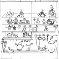 Chama-se mizuyakazari (水屋荘り) a disposição de maneira organizada dos utensílios necessários para o chá nas prateleiras do mizuya, facilitando a manipulação destes…